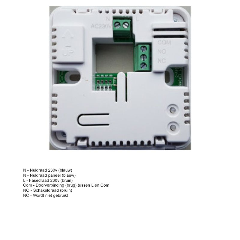 Deze draadloze opbouw ontvanger is ideaal om meerdere infraroodpanelen te koppelen met je thermostaat. Het voordeel van een draadloze thermostaat ontvanger is dat je geen gedoe hebt met het trekken van kabels tussen de infrarood verwarmingspanelen en de thermostaat. Je verbindt eenvoudig de ontvanger met je elektrisch infrarood warmtepaneel en deze maakt draadloos contact met de thermostaat. Het is in enkele gevallen nodig om de draadloze opbouw ontvanger te koppelen met je thermostaat, maar meestal gebeurt dit vanzelf.