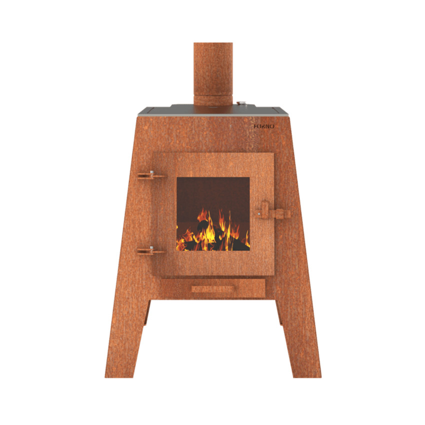 Het rookkanaal ook in cortenstaal is inbegrepen bij de tuinkachel Cooking 70x90x200cm. De complete terrashaard heeft door het cortenstaal een natuurlijk roest bruine kleur waardoor het een tijdloze verschijning is en past in iedere tuin. Met zijn rondingen oogt de tuinhaard Cooking design en modern. Maar ook in een klassieke omgeving misstaat deze zeker niet. Wanneer de Forno Cooking 70x90x200cm vuurkachel volledig geroest is, kun je een vernis laag aanbrengen om het verder roesten tegen te gaan.